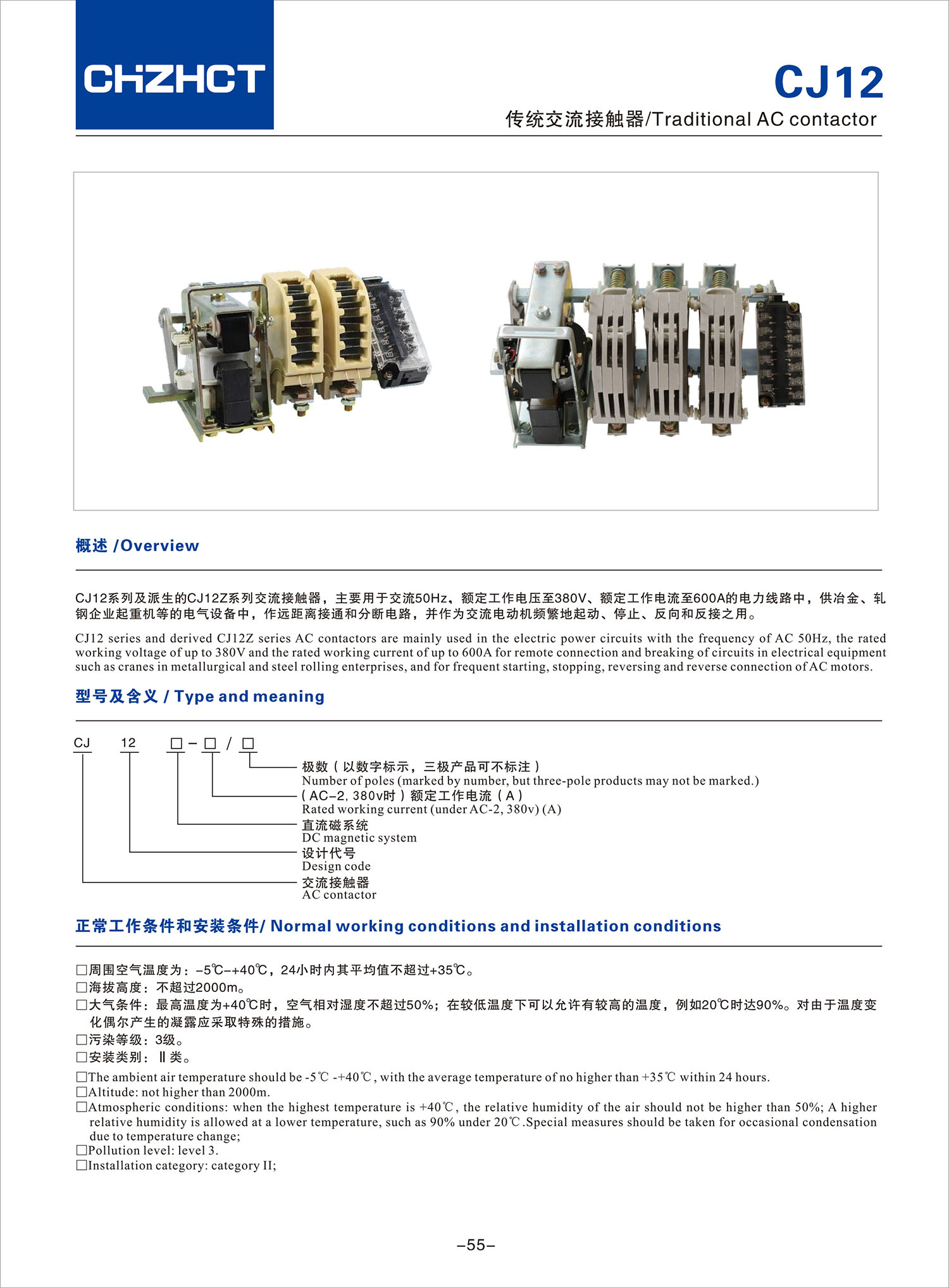 CJ12传统交流接触器产品说明书