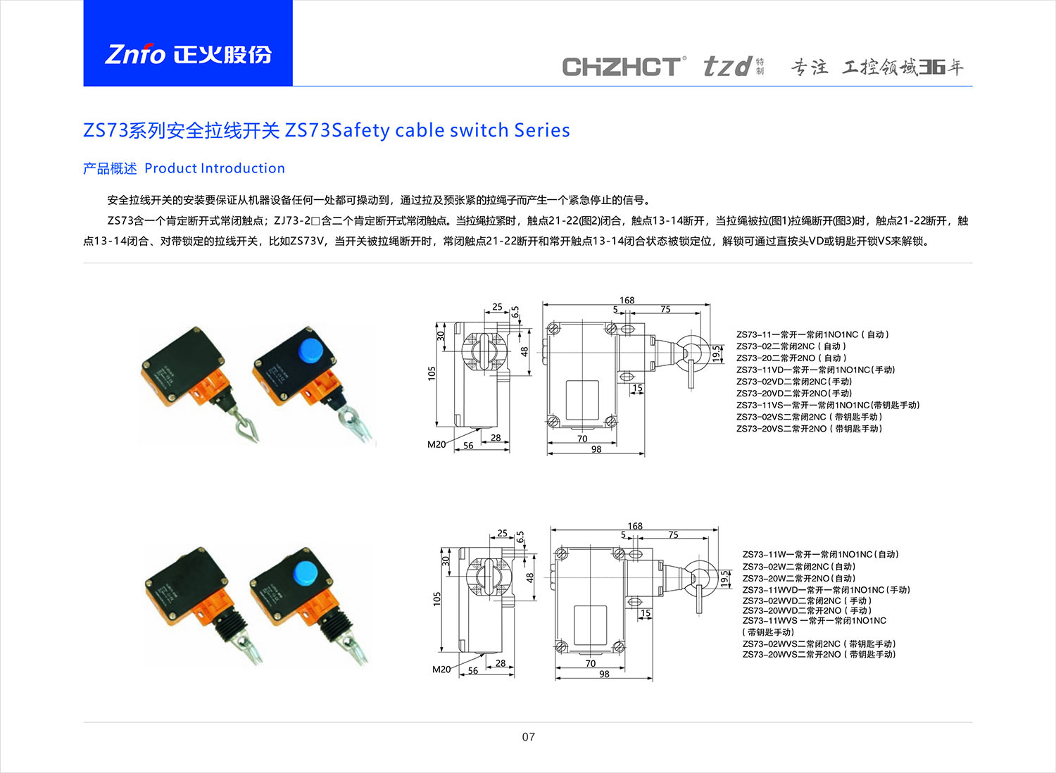 ZS73安全拉线开关产品说明书