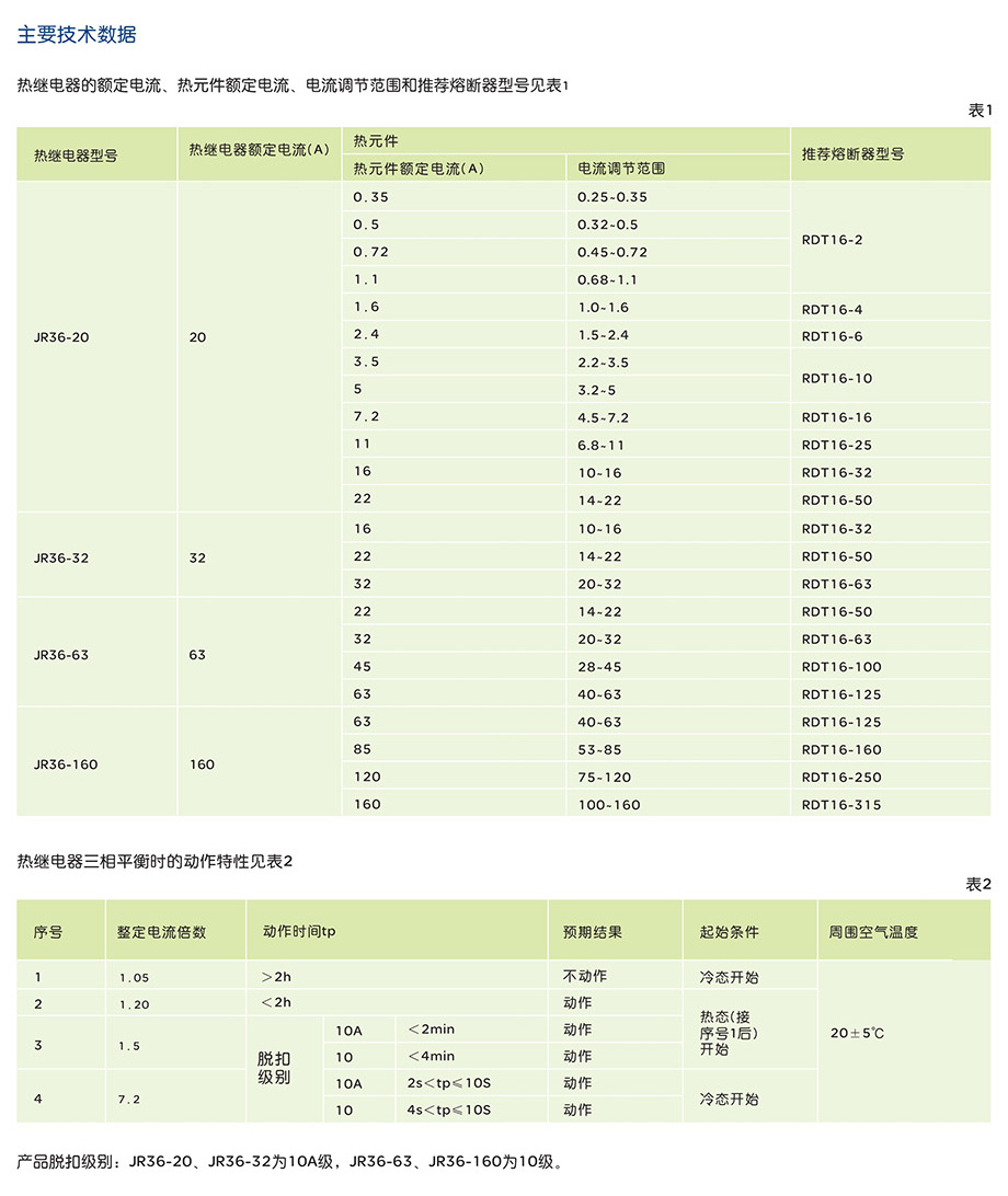 JR36系列热过载继电器产品说明书