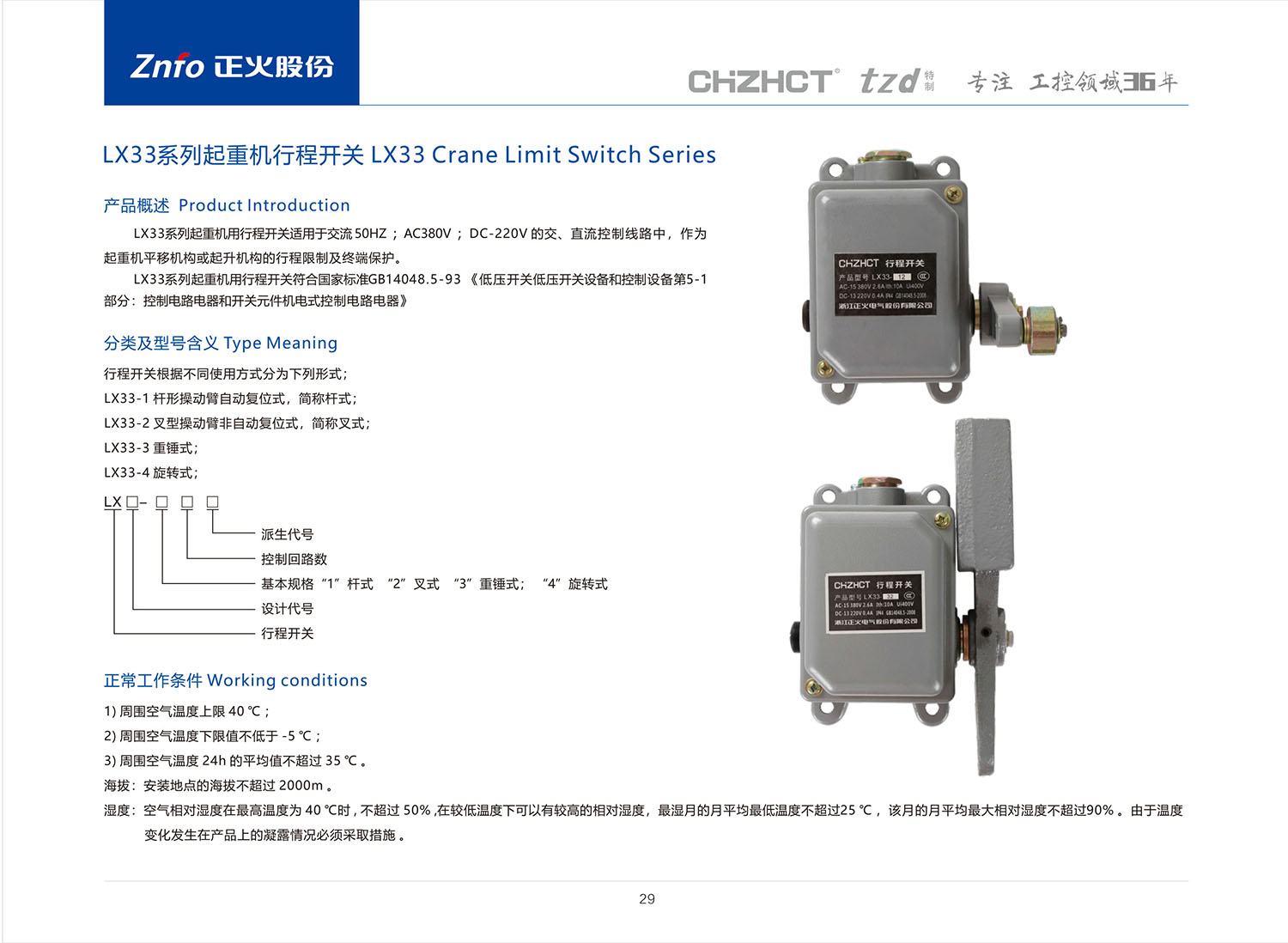 LX33系列起重机行程开关_行程/限位开关_行程/微动/跑偏/拉绳/超速_工业控制与保护_产品中心_ballbet贝博电气股份有限公司