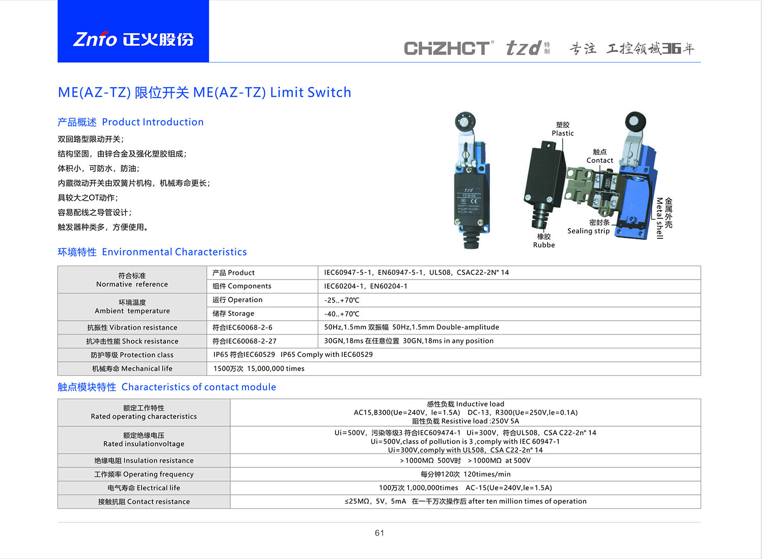 ME(AZ-TZ)限位开关_行程/限位开关_行程/微动/跑偏/拉绳/超速_工业控制与保护_产品中心_ballbet贝博电气股份有限公司