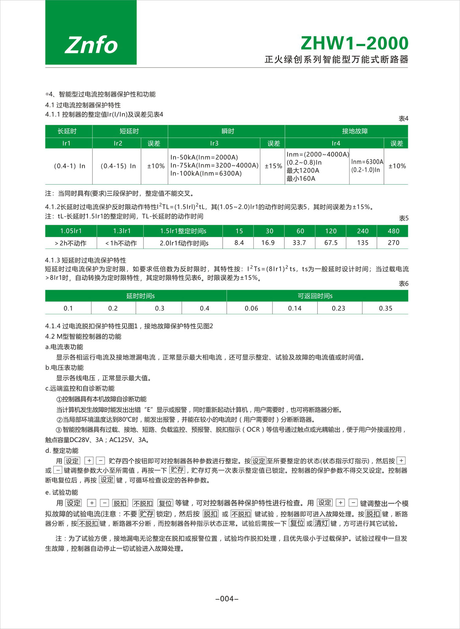 ZHW1-2000系列智能型万能式断路器产品说明书